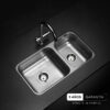 Pileta R63 de acero inoxidable AISI 304, de tamaño adecuado y diseño funcional, ideal para cocinas medianas. Acabado pulido para fácil limpieza.
